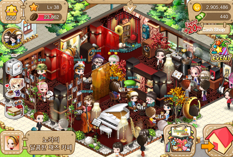 커피숍을 확장, 예쁘게 꾸밀 수 있습니다.