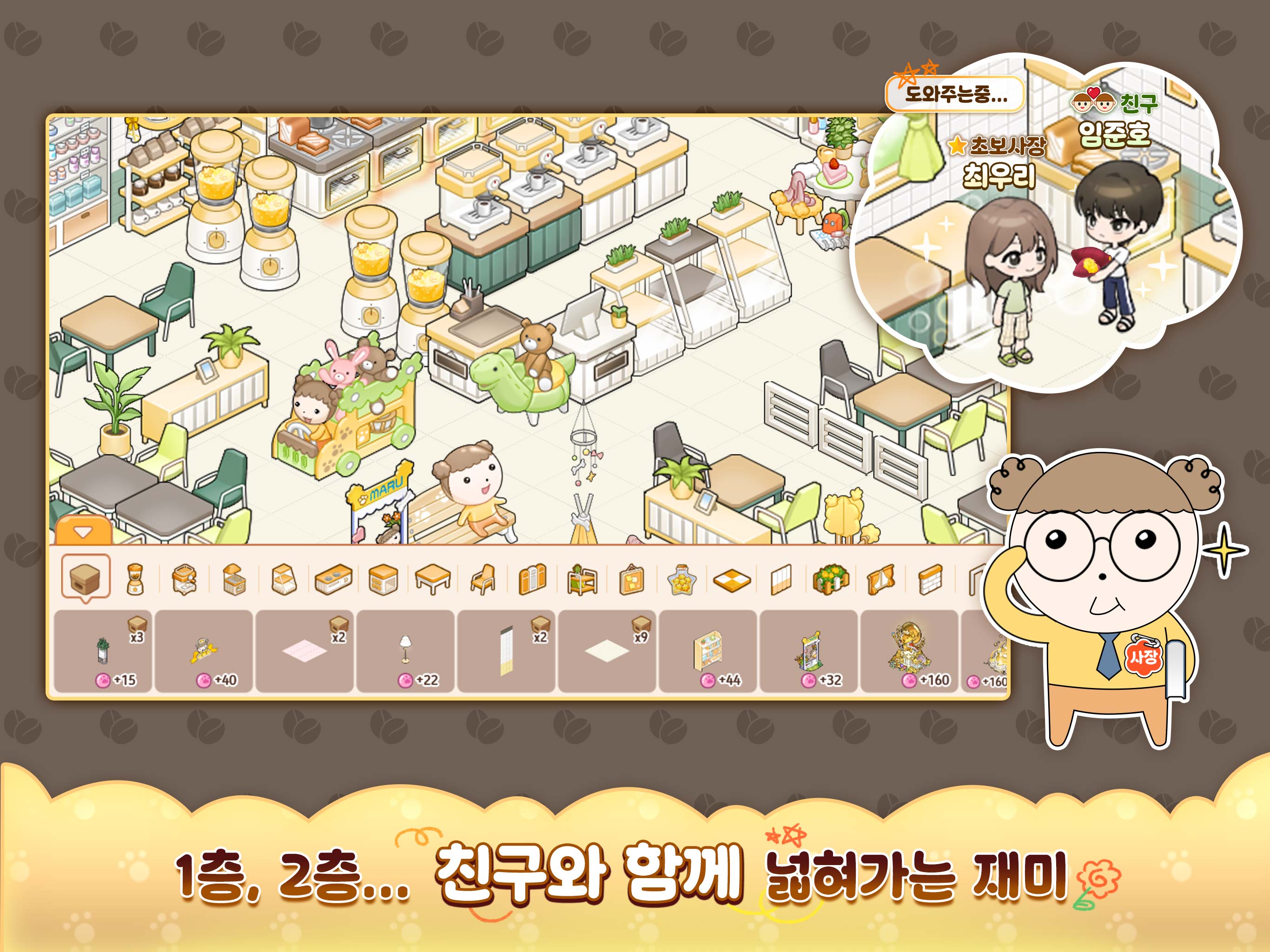 친구와 함께 카페를 확장하고, 루프탑까지 꾸미면 대박 카페 완성!